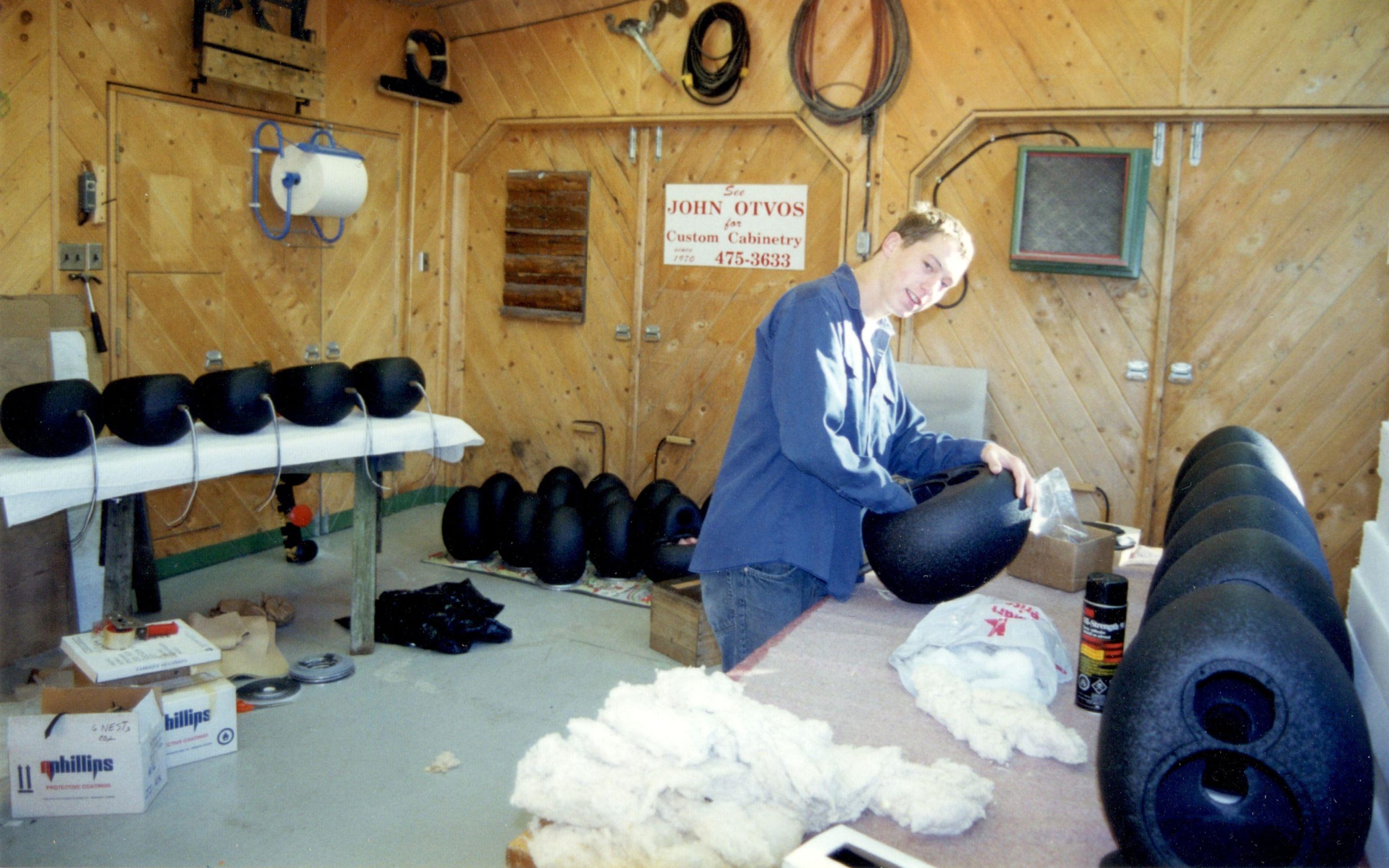 Todd applying the interior damping on the aluminium casting during processing – 1999.