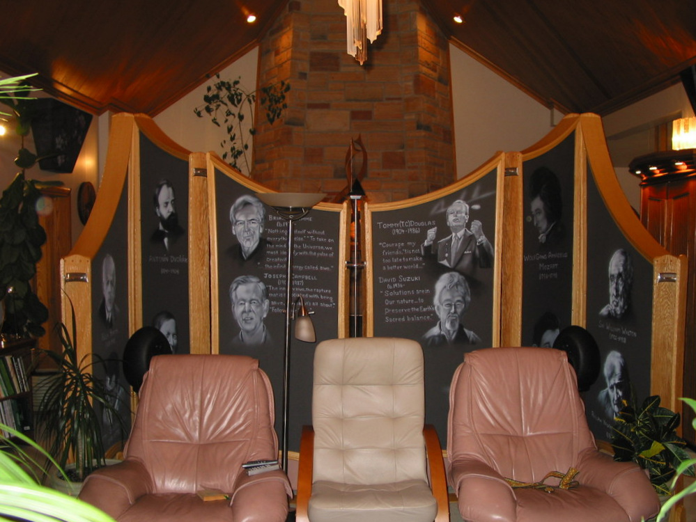 In 2008, before leaving BC, I gave away these 10 panels that I had spent more than $11,500 for airbrushing and materials acquisition, to a local Courtenay high school. The school sent a truck rental with a few strapping lads for the hoist . . . no not heist. hahaha I never heard back from the music department at the school. It’s now been a full decade. Such is life. We are taught to let go and let God. I did and I continue to do so, as there’s really no other way, unless one enjoys being trapped inside some psychological trauma of our own making.