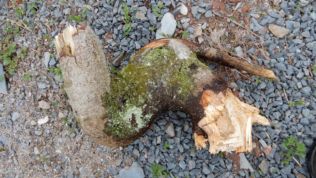 It’s also about the tail, which became a root, as well as the severely constrained compression wood in the two crotches.