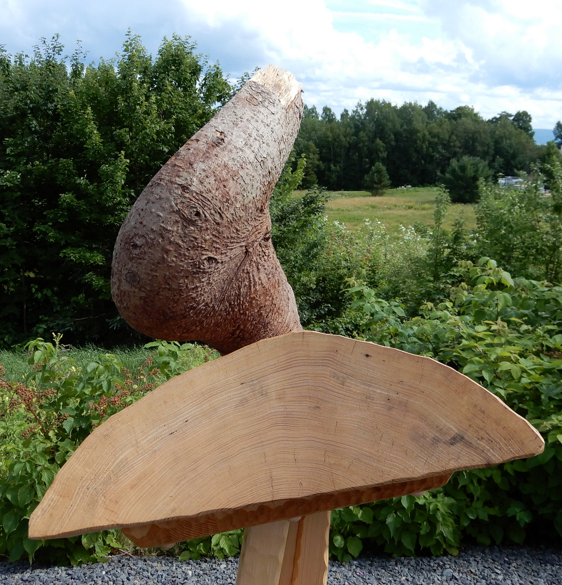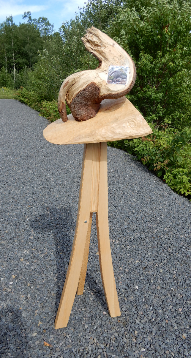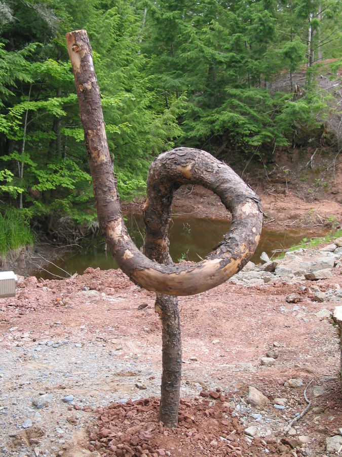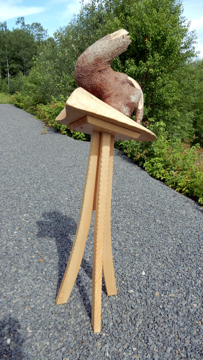 Me, mySelf & I,  only later, decided to take some of the hemlock left over from the Pi sculpture of 2011 that had been slowly curing in the house attic, to build a raised tripod sculpture.