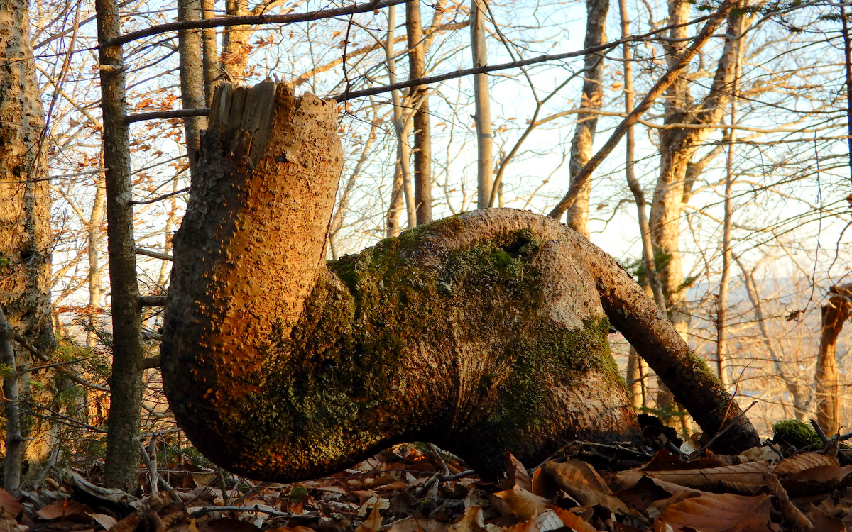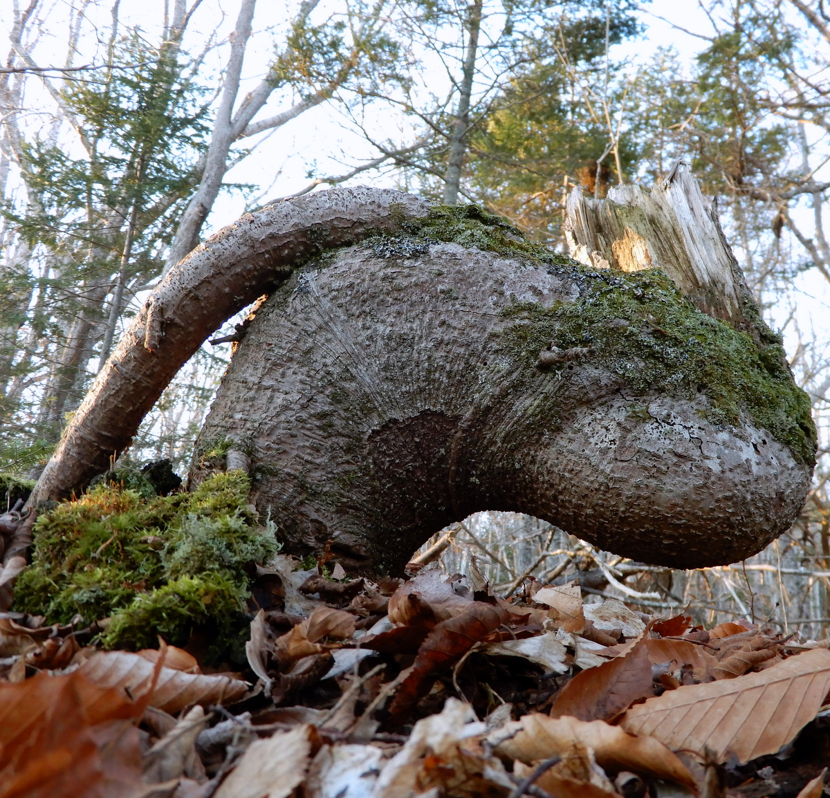 In November of 2017, while hiking within the trail network of our Woodville community atop the North Mtn, I spied a very weird rotting black spruce stump.  I shot a few rolls of digital frame and thought nothing more of those images. While still on Facebook at that time, (not since March 2018) I posted an image to my profile and also to the photography club; alas there was precious little, if any commentary that I recall. No problemo. Perhaps I didn’t sufficiently spice the click bait! hahaha