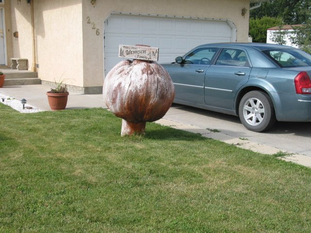 Giant cedar burl in Pemberton, BC residential driveway 2007.